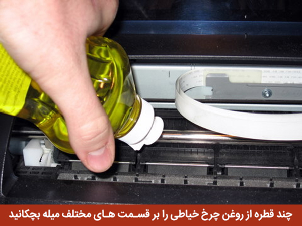بعد از مدتی از چاپ، ممکن است متوجه شوید از میله های انتقال دهنده کارتریج ها چاپگر،هنگام چاپ صدای قریچ قریچ از آن خارج می شود. این زمانی اتفاق می افتد که میله حالت چسبندگی به خود گرفته است یا خشک شده است و موتور انتقال دهنده نمی تواند به درستی بر روی آن حرکت کند. و موقع چاپ، حرکت آن را کند می کند.